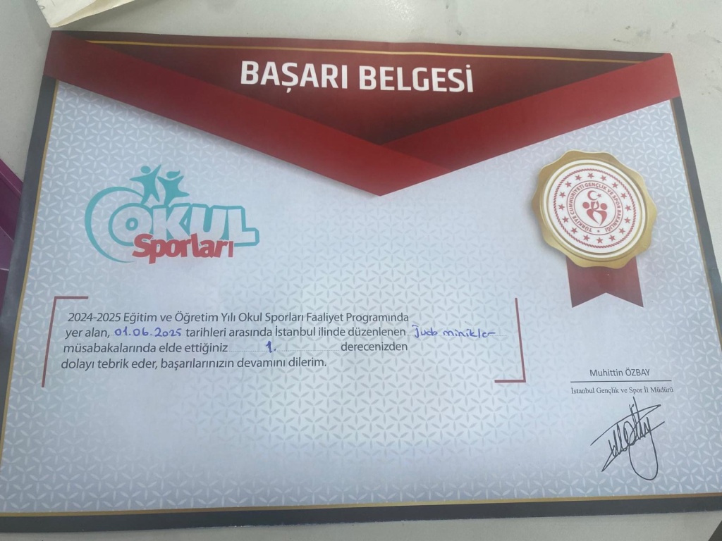 Okulumuz 4/A sınıfı öğrencisi Elif Göksu ARSLAN büyük bir başarıya imza atarak ilde Judo minikler birincisi olmuştur. Kendisini tebrik ediyor, bu başarıda emeği geçen herkese teşekkür ediyoruz.